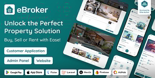 eBroker v1.2.8 – Real Estate Property Buy-Rent-Sell Flutter app with Laravel Admin Panel Nulled