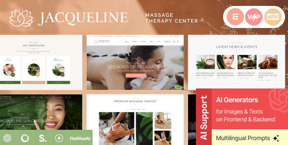 Jacqueline – attractive Health & Beauty WordPress Theme for stylish Spa & Massage Salon with advanced functionality and beautiful responsive design. Jacqueline is the right solution for contemporary spa salon, beauty company, hair or makeup salon, wellness center & massage services agency.