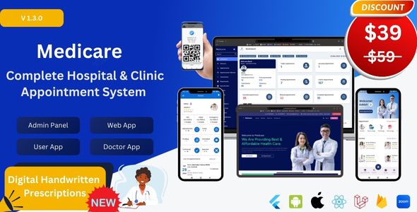 Medicare v1.3.0 – Hospital & Clinic Management and Appointment System with Admin, Web, User, and Doctor Apps