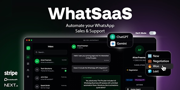 WhatSaaS is a robust sales and automation infrastructure for WhatsApp. Acquire the full source code (Next.js), scale your own user base, and monetize a high-demand solution.